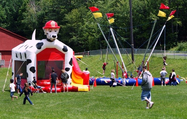 set up behind Gary’s Great American on the grounds of the Liberty Elementary School. Here kids could slide and ride and bounce.