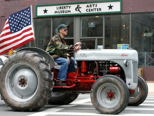 The Liberty Fourth of July Parade also included several antique cars, part of a classic car show located behind La Polt Park. And many unique and interesting tractors and their drivers also participated in the parade. Watching from in front of the Liberty Museum one felt transported in time by their appearance.