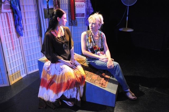 As the play neared its final scene, Aradhna sat on the slab, and flinging her arms wide to the heavens, sang “We are star-dust! We are golden! We are billion year-old carbon! I Hate that goddamn song. No peace! No way to undo. No way to do what we didn’t get done,” and then returns to a ladder, closes it and with the help of Ramon and Faythe, eases it down to the ground, and “By the Time We Got to Woodstock” fades to black.