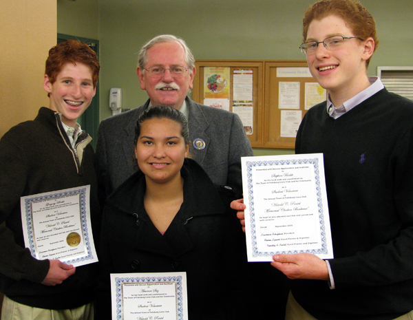 The future for service was ably represented by four students from Fallsburg High School – Stephen and Gregory Bedik, Amanni Sitz and Brooke Rappaport, who were special honored guests of the Lions in recognition of their efforts in serving club functions in the community.