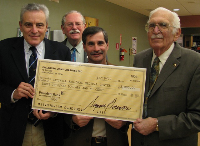 FALLSBURG – The Fallsburg Lions Club appreciates the services offered to the community by the Catskill Regional Medical Center (CRMC). Chief Operating Officer Steve Ruwoldt recognized the Club’s support for as soon as he took over management of the facility, he became an active member of the Lions.
