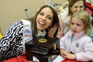 Alyse J. Zwick, Miss New York State 2009 paid special attention to a young beauty pageant fan waiting in line for an autographed photograph.
