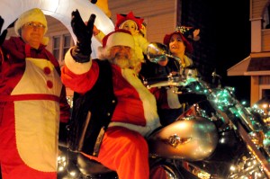 Dancing Santas, sitting Santas, prancing Santas, Santas riding on fire trucks, and Santas throwing candy to kids in the crowd. Santas on sleighs, a Santa on a big V-Twin motorcycle, and a Jolly ‘Ole Santa handing out presents after a parade. The 15th Annual James Dworetsky Memorial Holiday Parade of November 27, had more Santas than you could toss a reindeer at.