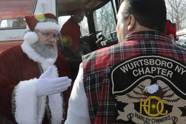 WURTSBORO/WOODBOURNE – “It’s fulfilling a life-long dream,” said Jason Parks, who turned up at O’Toole’s Harley Davidson on Sunday in the guise of Saint Nick, before heading over to Woodbourne to hand out tons of toys to hundreds of needy kids in the county’s Head Start program.