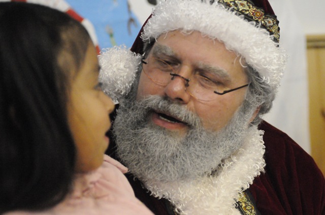 As a ten-year old, Parks watched his father play Santa Claus, and now 30-some years later he got to don a bright red costume as Saint Nick, albeit with a longer custom made coat fashioned by “Mrs. Claus,” Becky Siruchek.