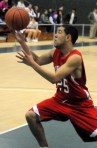 Elevator Going Up! Liberty’s Brandon Tompkins soars to the rim as Monti’s Jesse Kapito defends the glass.