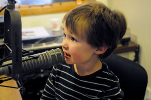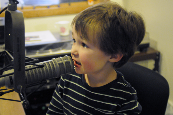 Timothy Desmond, 4, ‘at the mike.’ His pilot father Dan has been an on-air volunteer for about three years.