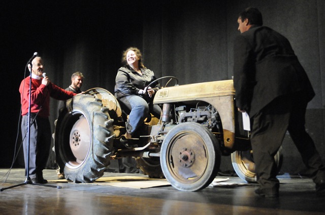The first curtain revealed a 1951 Ford farm tractor, Pictured with Tara Berescik are John Jarbine and Kevin Stanly from Johnson’s Toyota, along with superintendent Thomas W. Palmer.