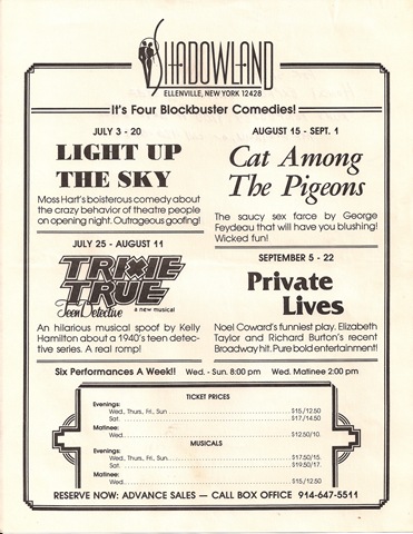 ELLENVILLE, NY, June 14, 2010 – More than 25 years after defying long odds, harsh wintry conditions, scant supplies of food and little money to invest, members of the Cooperative Artists, the group that established professional theater at a then-closed 1920s Art Deco movie house in the old Borscht Belt region of the Lower Catskill Mountains are returning for a July 4th weekend reunion celebration at Shadowland Theatre, the Actors’ Equity theater in downtown Ellenville, NY, 90 miles northwest of Broadway.