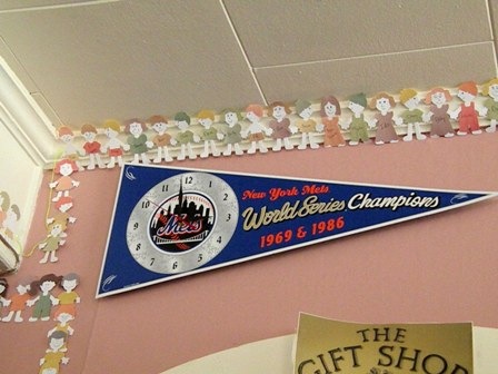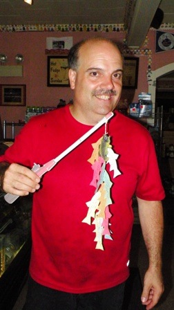 But Monteleone, being the enterprising man that he is, decided that shaving heads wasn’t enough to raise the $10,000 he has his heart set on. So he created what he calls the “Line of Hope” – hand-holding paper dolls that encircle the walls at The Corner in Eldred, NY, a combination restaurant, ice-cream stand, gift shop. Each doll represents a $1 donation to St. Baldrick’s. There are currently 1750 or 265 feet dolls, and Monteleone says “People can still buy the dolls, I’ll make the dolls for them and put them up on the wall. I got room for another 500, and then … if I have to go outside …”
