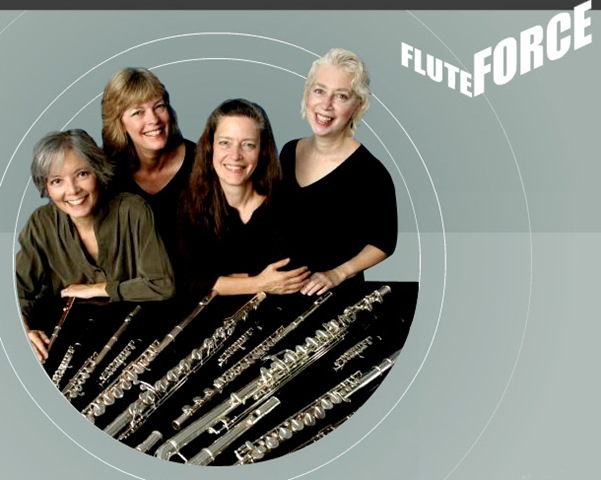 SOUTH FALLSBURG, NY – On Saturday, October 2, 8 pm, Flute Force comes to South Fallsburg to play classical and contemporary music for wind instruments. The four flutists Elizabeth Brown, Sheryl Henze, Rie Schmidt and Wendy Stern will perform Pastorale by Igor Stravinsky, Suite of Dances by Hieromus Praetorious; Jours d’ete a la Montagne by Eugene Bozza; Travelogue (1995) by Elizabeth Brown; Georg Philipp Telemann’s Quartet in D minor; and Jacob’s Ladder by Richard Arnest (NY premiere) that features antiphonal effects.