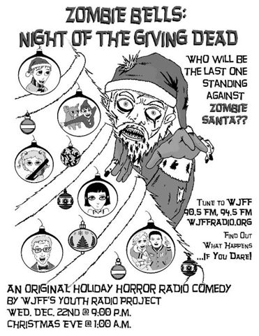 “Zombie Bells…” is an original “holiday, horror radio comedy” written and produced by the YRP. Not intended for the small fry, older young people and adults will laugh and find all their “zombie” dreams fulfilled.