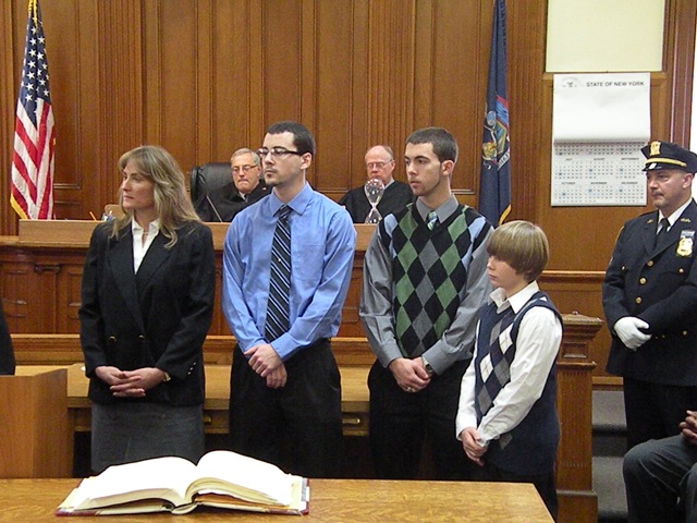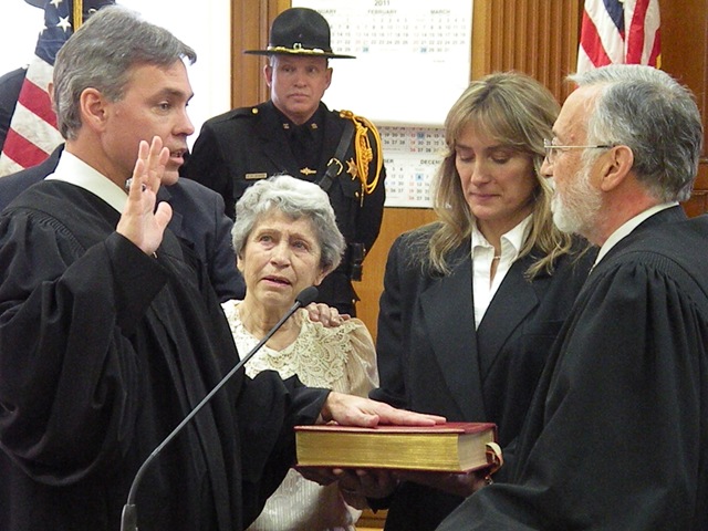MONTICELLO, NY (January 7, 2011) – Surrounded by family and friends, Sullivan County’s newest County Court and Surrogate Court Judge Mike McGuire was sworn in on Thursday, December 30, 2010 at the Lawrence Cooke Court House.