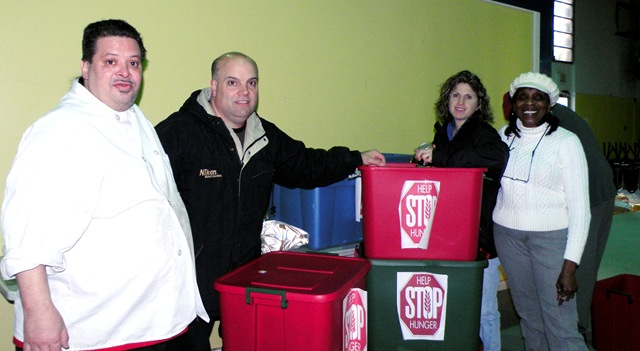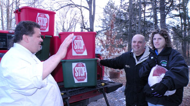 So last Wednesday, January 5, Lou Monteleone and his wife June (at right in photo), delivered over 400 non-perishable food items to the Sullivan County Federation of the Homeless. Boxes of pasta, cereal and cake mixes, cans of vegetables, jars of tomato sauce and baby food, bottles of juice and even a frozen turkey were gratefully accepted by Soup Kitchen Program Coordinator Esther Tyler and Chef Luis Rodriguez (left in photo above).