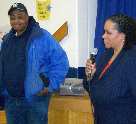 The speakers were well received by the students who asked and answered questions about a variety of subjects. First Baptist Church of Monticello Musical Director Dr. Donna Singer talked about great musical pioneers such as Louis Armstrong and Josephine Baker, while Sullivan County GED case manager Earl Gomez (pictured at right with student Bryce Walker) spoke about green energy and how it related to the wind turbine on the school lawn.