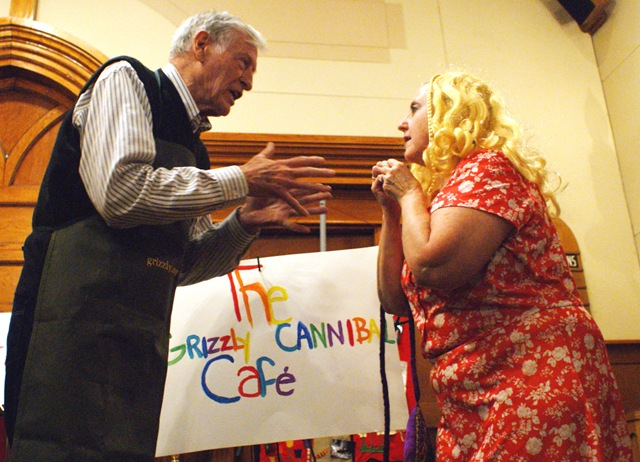 to do a hilarious skit about the Grisly Cannibal Cafe, which featured all sorts of roadkill and “gourmet” dishes for breakfast, lunch and dinner. The two (photo left) won the “Don’t Go to the Cafe Award.”