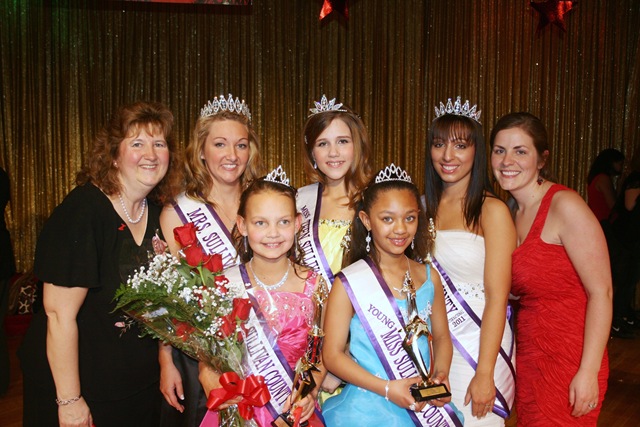 Back row (l – r): Assistant Director – Amy Bernhardt, 2011 Mrs. Sullivan County International – Elizabeth Brown, 2011 Miss Teen Sullivan County International – Brianna Worden, 2011 Miss Sullivan County International – Felicia Ramos, Executive Director – Christina Buckler. Front row (l – r): 2011 Miss Sullivan County Pre-Teen – Danielle Curry, 2011 Young Miss Sullivan County.