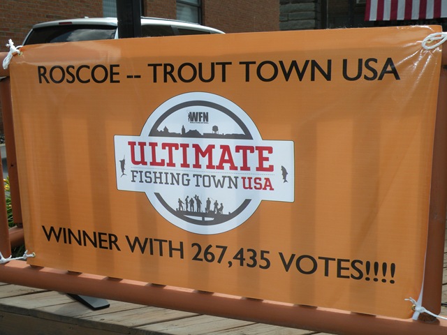 Paying tribute to a county that came together as a community to make Roscoe the winner that county residents know it is, Elaine Fettig, President of the Roscoe-Rockland Chamber of Commerce thanked the thousands of people who gave of their time to help Roscoe win the honor. Local and state politicians spoke, and a parade filled with trout-themed floats and people marched down the main drag of the town saluting both the country’s independence and Roscoe’s grand prize.