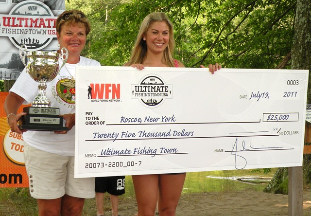 ROSCOE, NY (July 21, 2011) – On Tuesday, July 19, Roscoe, NY had some very special visitors. Representatives of the World Fishing Network came to Sullivan County to present Roscoe with the Grand Prize in the Ultimate Fishing Town USA contest.
