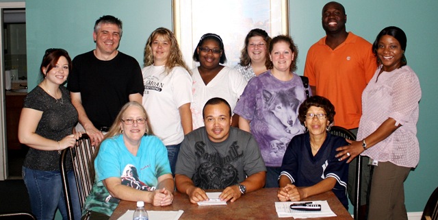 (L-r) Standing: ichelle Clark, Trainer John Raffaele, Kim Bibbo, Latevia Hilliard, Shannon Ross, Denise Solta, Albert White II, and Karen Barnes;sitting (l-r) are Sandra Vine, Manny Miranda, and Natalie Willis. Raffaele, NHC Director of Staff Training and Development had just completed an annual training workshop with a group of Direct Support Professionals.