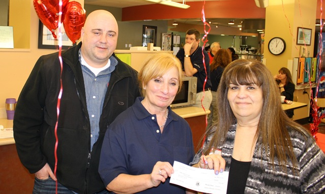During the event, President of Fallsburg Lions Club Miranda Behan (at right in photo) and Heart-a-thon Chair Chris Didrich (left) presented a $500 check to Helena Manzione, General Manager at WSUL/WVOS.