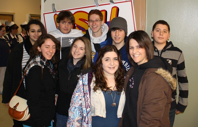 Town of Fallsburg High School Leo Club members at the WSUL/WVOS Heart-a-thon. Front row (l-r): Rachel Schmitt, Samantha Wiles, Lindsay Malman, and Club Advisor Ms. Shari Mednick; back row are Shorouk Abohussien, Cody Vegliante, Logan Mednick, and Adham Abohussien.