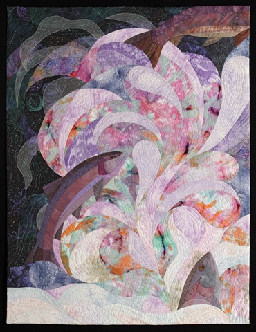 Invitational quilter, Susan Balch of Reading, VT, often finds inspiration for her quilts through fly fishing experiences. “Trout and salmon jumping the falls is one of nature’s most wondrous sights and one of my favorite images” muses Balch. Her work, Jumping Rainbows is part of this year’s show.