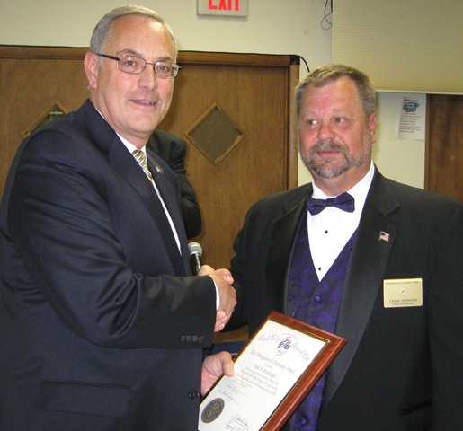 Pictured are Judge Meddaugh (left) and outgoing Exalted Ruler Craig Johnson.