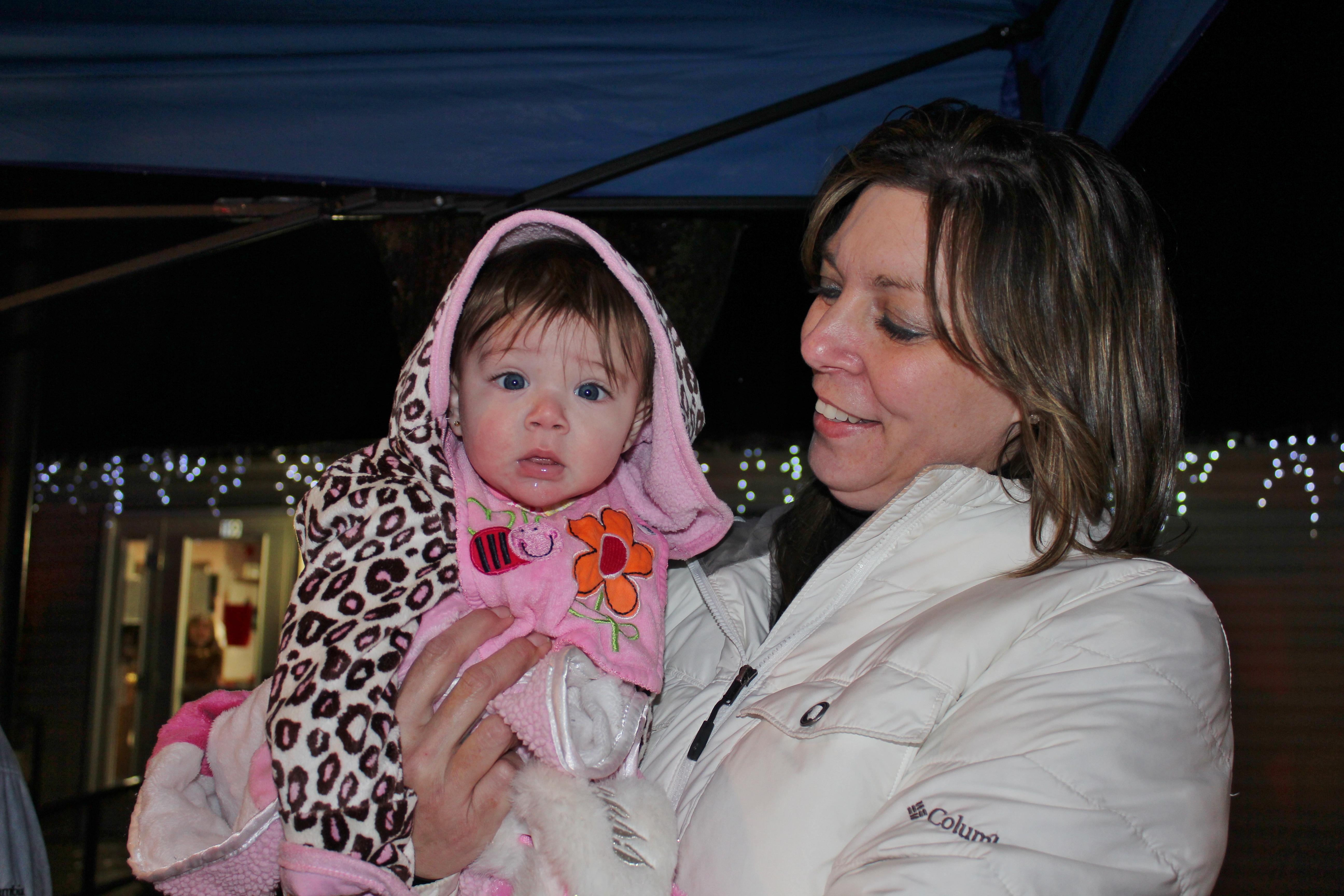 Hundreds of people lined Main Street as the parade of fire trucks, ambulances, police cars and floats from many area organizations brightened the cloudy, rainy night.