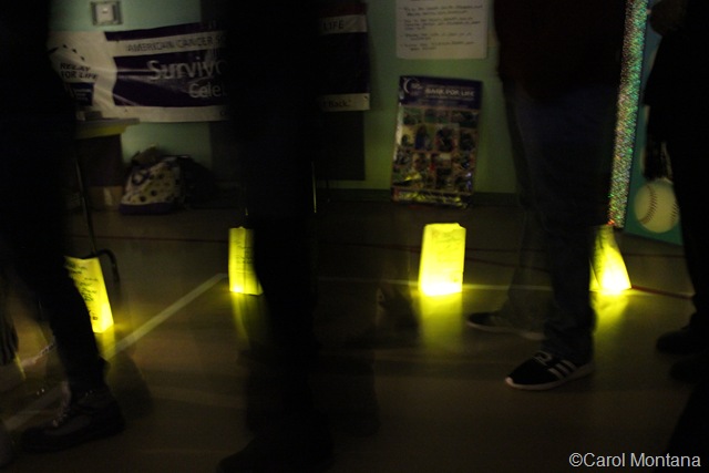 the bags decorated with names of survivors and loved ones lost to cancer.