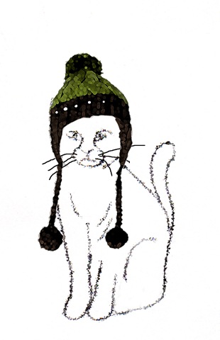 when he roamed the backyards siring litters of gray and white kittens like himself. I think if he were to choose a hat it would be knitted, Peruvian, the kind with a chin strap which Six would leave dangling to look cool.