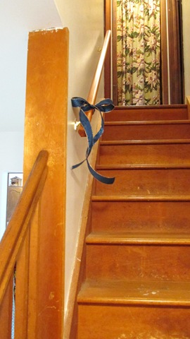 It wasn’t until early morning when I went downstairs to the bathroom that I realized why the bow had been placed in the stairwell. Until then, we’d had a railing that went halfway up the stairs. Marci and Smitty, with the help of another friend, had installed a railing that lined the rest of the wall. Now, whenever Jude or I go to the bathroom in the middle of the night, instead of balancing ourselves with a palm pressed against the wall, we hold the railing and say a silent thank you to our friends.