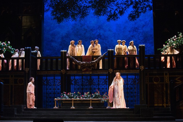 With outstanding and powerful, majestic sets by Ezio Frigerio, exquisite, historic costumes by Franca Squarciapino and remarkable staging by David Kneuss, who was able to keep as much dramatic momentum as possible going in lieu of the episodic and poetic libretto, all came together perfectly within Piero Faggioni’s visually splendid production and the ever-superb Met orchestra, conducted by Marco Armiliato.