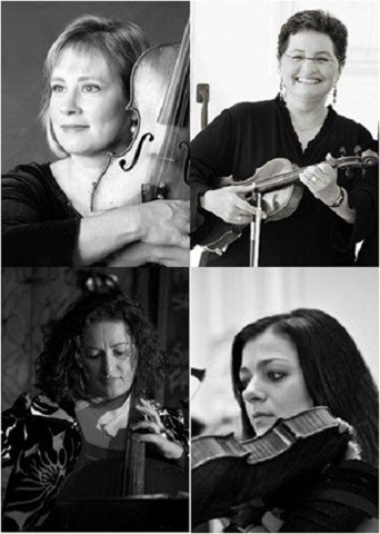 Quartet: Donna Kushner and Tara Goozee on violins, Lauren Buono on viola, and cellist Jeanne Fox.