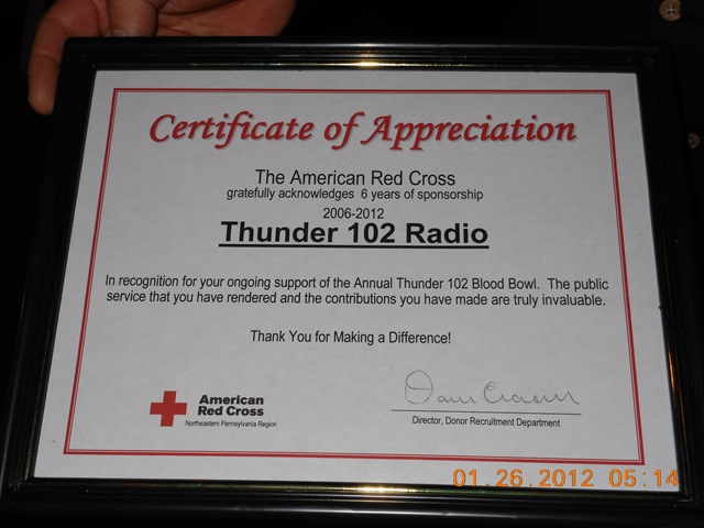 MONTICELLO, NY (February 2, 2012) – Thunder 102, The American Red Cross and Catskill Regional Medical Center (CRMC) once again sponsored the Thunder Blood Bowl, which helped to facilitate local