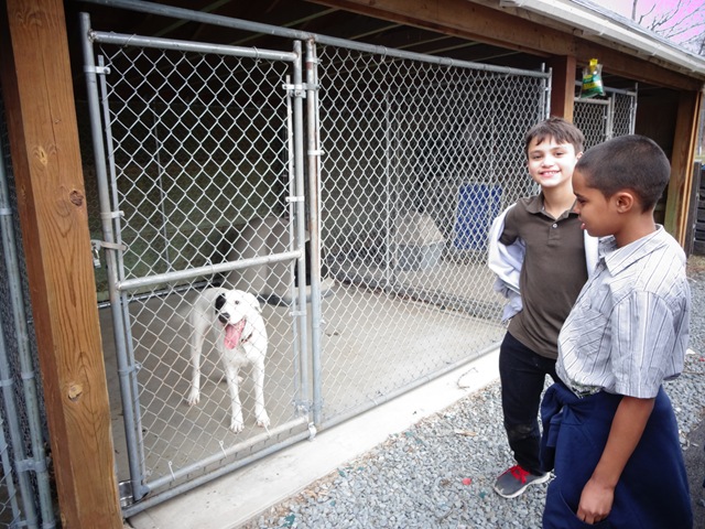 In top photo: Elyssa Olsen’s fourth grade student’s Isaiah River and Pharaoh Bolden looking at the dogs in the Rock Hill SPCA kennels.