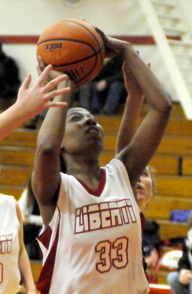 Liberty’s hot hands: Victoria Baum (15points including two ‘3’s’), Alyssa Corbett (13 points including a ‘3’), and Justice Muniz-Dingevan added a ‘three’.