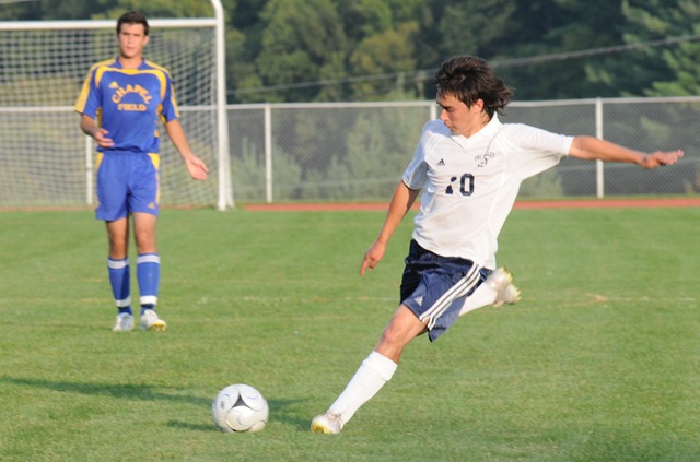 Tri-Valley is a bit slim this year in the senior department, as three 12th graders (Bobby Beale, Matt Bogorad and Logan Ackerly) see double duty as football players. Keepers during the match: Ezra Kliszewski (Chapel Field), and Eugene Norton and Bobby Beale (Tri-Valley). Bears scoring: Captain Anthony Beale unassisted at 11:00 in the first frame and Beale assisted by Juan “Nacho” Rios off a corner kick at 28:00. In the second half, Rios scored on a direct kick about six minutes into the frame, followed by Mike Houghtaling penalty kick at the 29 minute mark.