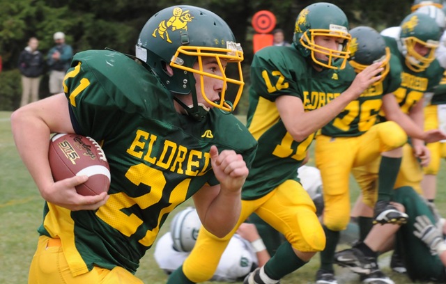 Eldred’s Shaun Berger tries to elude a tackle.