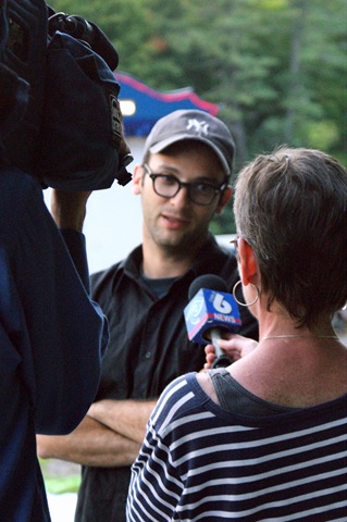 From the day we got back from our trip along the river from Philadelphia to Hancock everything felt a little bit like a snowball rolling down hill to me – I mean this in a good way. The momentum just kept getting stronger and stronger. Josh Fox agreed to screen his movie-in-progress, “Water Under Attack” at the gazebo in Narrowsburg, e-mails were starting to come in from people saying they were participating, newspapers from Philadelphia on up starting calling asking for information, interviews and photos from our Two Grannies trip.