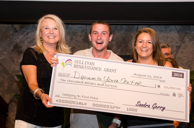 BETHEL, NY (August 18, 2014) – Hundreds of people attended the two hour Sullivan Renaissance Awards Ceremony on Monday, August 11, as almost $150,000 in grants and scholarships were awarded to winning communities throughout Sullivan County. The ceremony returned to Bethel Woods Center for the Arts, this time in the Event Gallery.