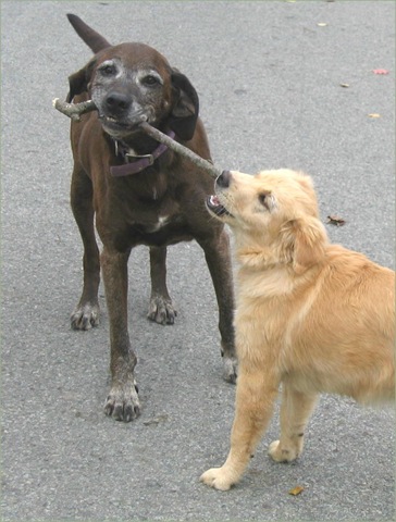 Another friend’s dogs benefit from leftovers whenever we see them. Once, I mistakenly overcooked a couple of gorgeous bone-in pork chops and after dutifully picking at them awhile Janet and I spent the rest of lunch concentrating on the side dishes of oven-roasted green beans with freshly grated lemon rind, sautéed apples, and a spicy Asian-inspired coleslaw. Then off we drove around the corner to Marci’s house where Chloe and Duke were basking in the sun. As we emerged from the car they made a bee line for us, wanting to be pet and kissed and perhaps noting the Tupperware in my hand. “Sit!” we commanded, then Janet and I took turns feeding the pups the meat while Marci looked on bemusedly from her porch door. “Hey, I like pork too!” she called out, but by then our hands had been licked clean.