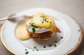 hash browns. French toast made with brioche or challah breads and pancakes or waffles with “real” maple syrup, served with smoky bacon or sausage links and fresh fruit, were good picks for those who liked a little sweet with their savory. Most popular, however, were eggs poached and served on toasted, buttered English muffins. The original incarnation was Eggs Benedict. The golden muffin halves were topped with ham or bacon, tender eggs, and finished with a thick layer of lemony hollandaise sauce. Other varieties were Florentine, where sautéed spinach filled in for the ham, and Scandinavian style, which meant sliced smoked salmon made an appearance.