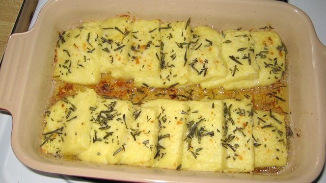 Course ground semolina flour can be found in many supermarkets (Bob’s Red Mill is a popular brand, also carried at Walmart). Do not substitute durum flour, which is much more finely ground. This dish works well for brunch, along with a green salad of arugula, radicchio, and endive or with a fresh fruit salad.