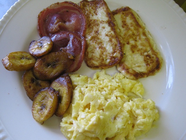 More pleasant than the sancocho experience was my introduction to the tremendously hearty and filling typical Dominican breakfast, which consists of fried or scrambled eggs, grilled salami, and slabs of tangy,