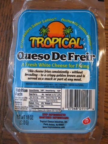 My Dominican friend at work was nice enough to stop at her local market to buy me the softest, blackest plantains she could find and a package of queso de freir (or fry cheese). I’d forgotten to ask her to procure me some of the salami typically used, so I bought some thinly sliced Italian bacon, pancetta, which is not smoked but has a wonderful savory, salty flavor and crisps up nicely when placed in a hot skillet.