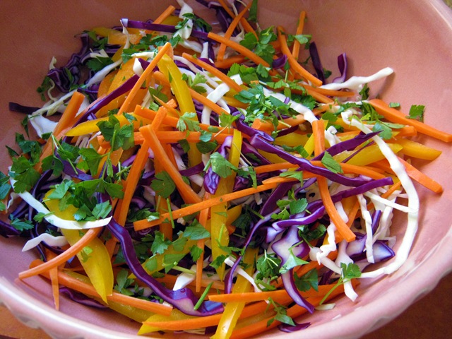 However, the oven-roasted green beans with crispy shallots and haricot vert with butter, mint, and lemon zest were big hits, as was a colorful mixed vegetable slaw. Also in the running and pitted against each other are roasted butternut squash with pumpkin pie spices (cinnamon, mace, nutmeg, cloves, and allspice) and fresh rosemary, and oven-roasted blue Hubbard squash and sweet potatoes.