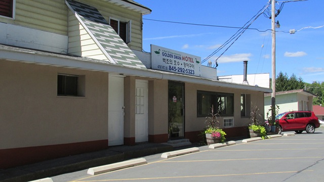 We walked a few hundred feet from the motel and saw a lone black man fishing the pond and, interestingly, quite a few Orthodox Jews in their long garments pushing carriages and trailed by two or three young kids. They were strolling down the sidewalks and through a small park that was across the way from the restaurant. A young boy was also casting his reel by the pond and I asked him what fish were in those waters. After responding hesitantly, he ran off to join his dad, the man we’d passed and nodded to on our way to the park. Blacks, religious Jews and Koreans: an odd little town indeed.
