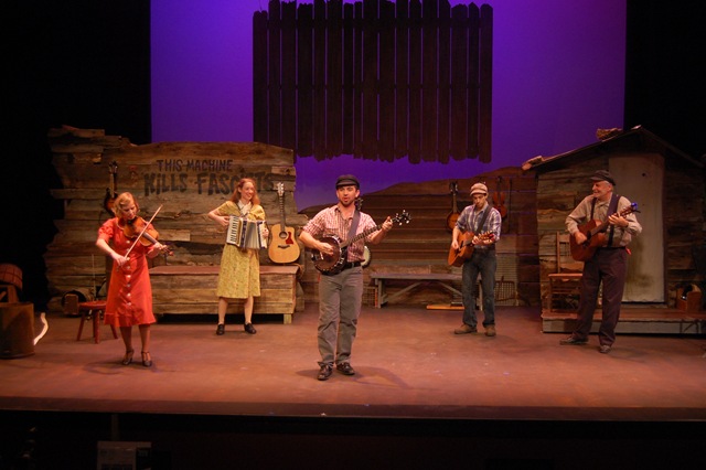 has this adjusted lyric been more clearly defined than at the Shadowland Theatre’s opening-night performance of Woody Guthrie’s American Song. On a clever and inspirationally designed stage, multi-talented actors/musicians displayed their perfected craft.