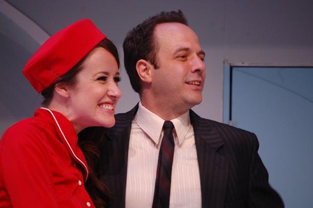 Just imagine, a self assured bachelor, engaged to 3 different stewardesses who know nothing of one another. Bernard, played by David Mason, has been using an airline-flight timetable to keep track of their arrivals and departures, thinking that this will insure they never run into one another. Because of the airlines strict interviewing process Bernard thinks his situation is ideal; he’s “engaged” to the best of the best, chosen fiancées “from a pool that is already super sifted.”